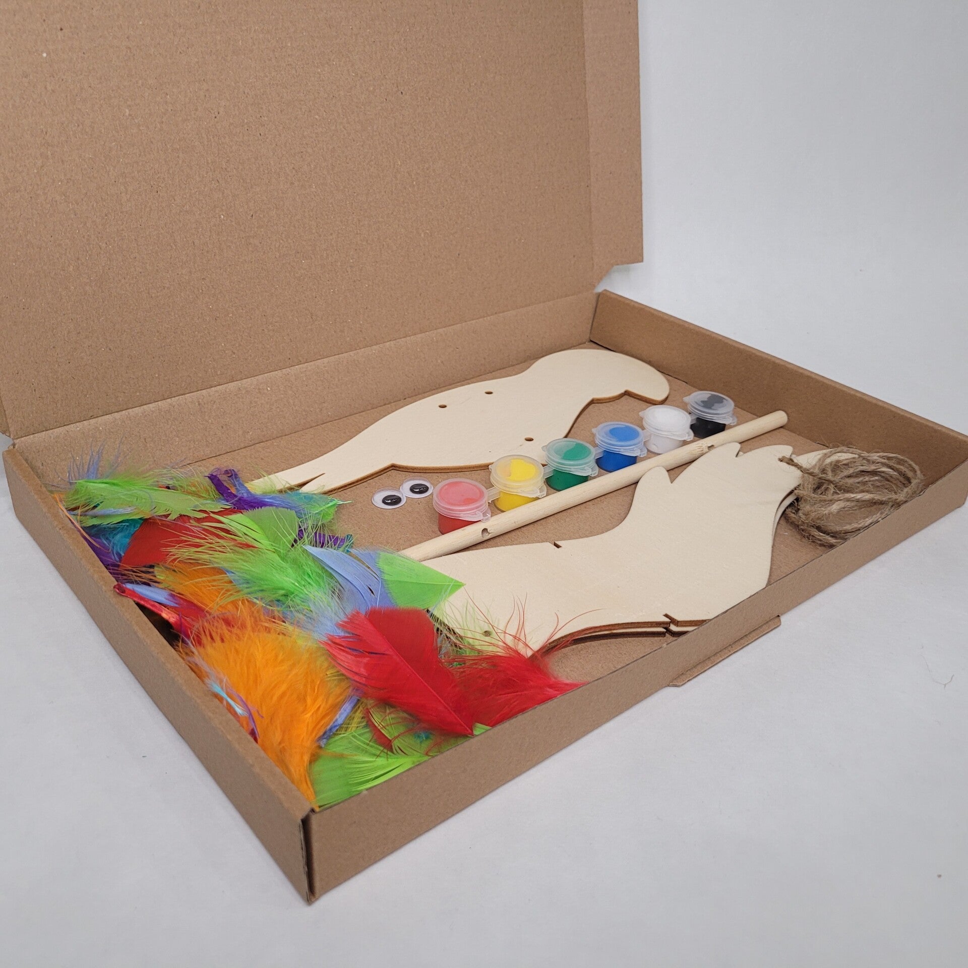 In dit knutselpakket vinden jij en je knutselkampioen alles wat je nodig hebt om deze papagaai te transformeren tot een kleurrijk meesterwerk! Pak je kwast en duik in een wereld van verf, veren, en glanzende oogjes. Laat je verbeelding de vrije loop terwijl je de perfecte look creëert voor jullie nieuwe veren vriend.