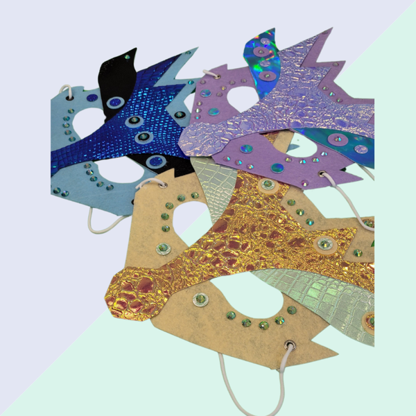 Dit drakenmasker knutselpakket bevat een vilten basis die je kunt personaliseren. Samen met de 2 kleurrijke en glimmende versieringen maak je het basis van je masker. In het pakket vind je nog verschillende onderdelen om jouw drakenmasker helemaal te versieren en te personaliseren zoals hoe jij dat wilt. Inclusief lijm en een kwastje.
