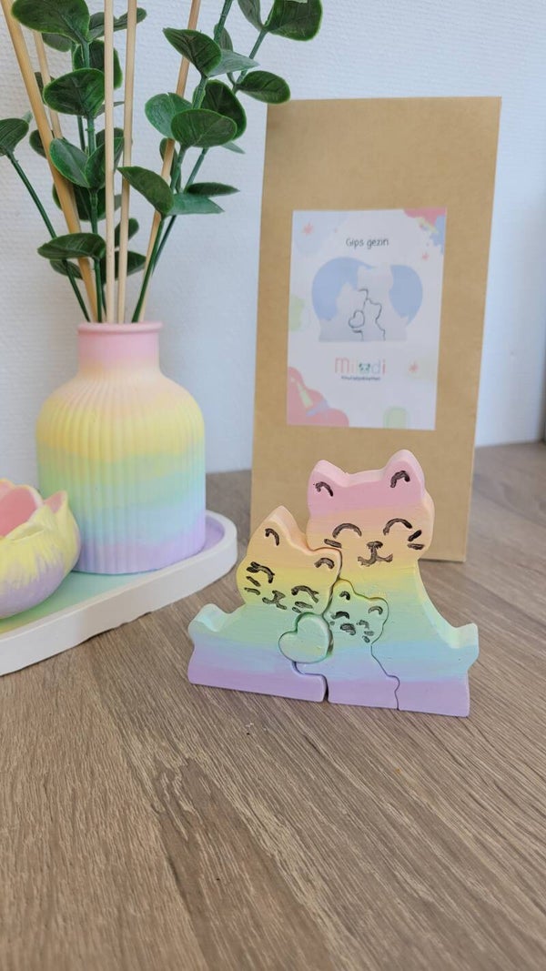 Maak een prachtig beeldje van jullie als gezin. Een super leuk cadeau om ter decoratie neer te zetten. Versier het beeldje met de bijgevoegde verf. En geef dit cadeau tijdens bijvoorbeeld Moederdag.