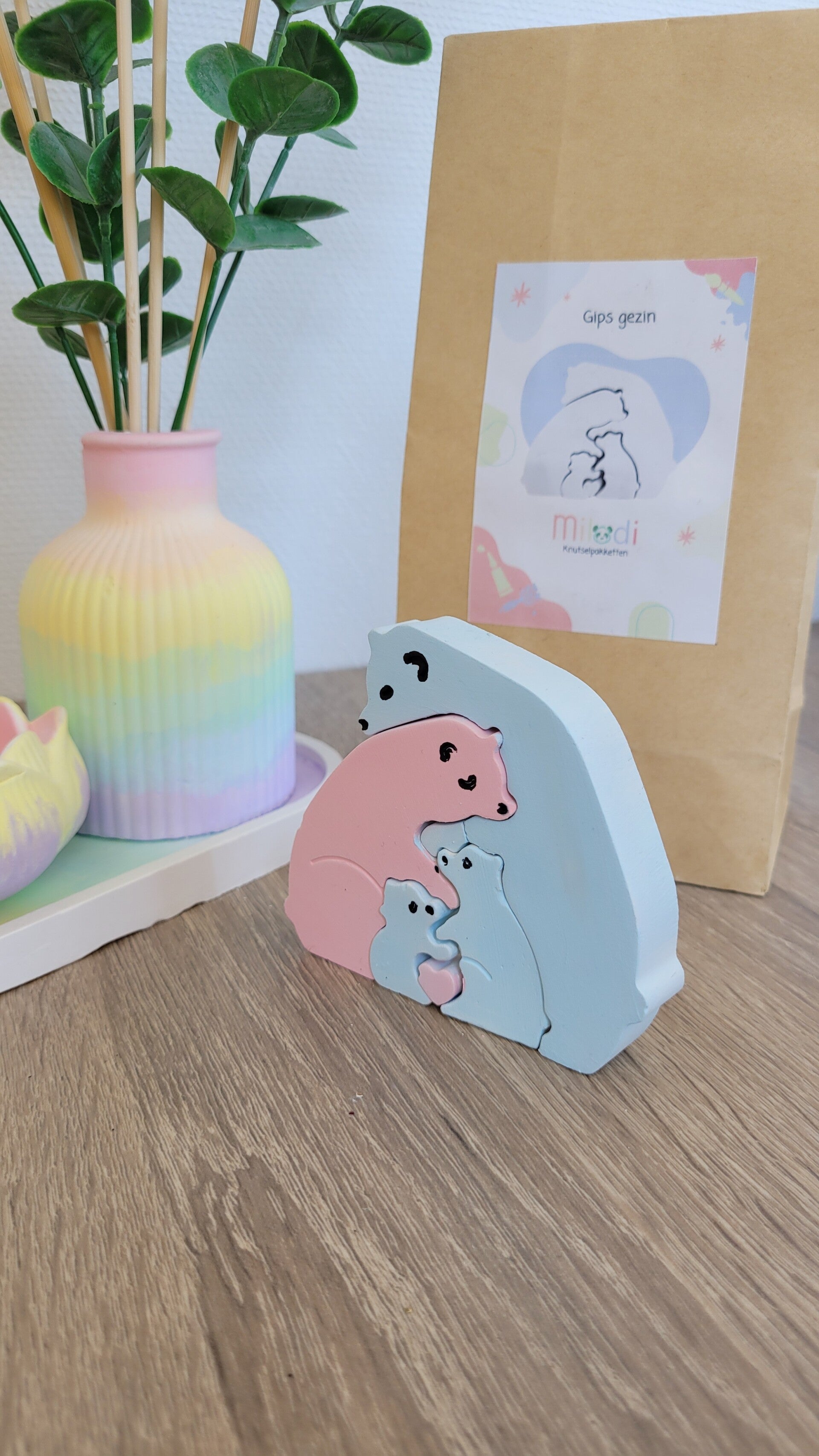 Maak een prachtig beeldje van jullie als gezin. Een super leuk cadeau om ter decoratie neer te zetten. Versier het beeldje met de bijgevoegde verf. En geef dit cadeau tijdens bijvoorbeeld Moederdag.