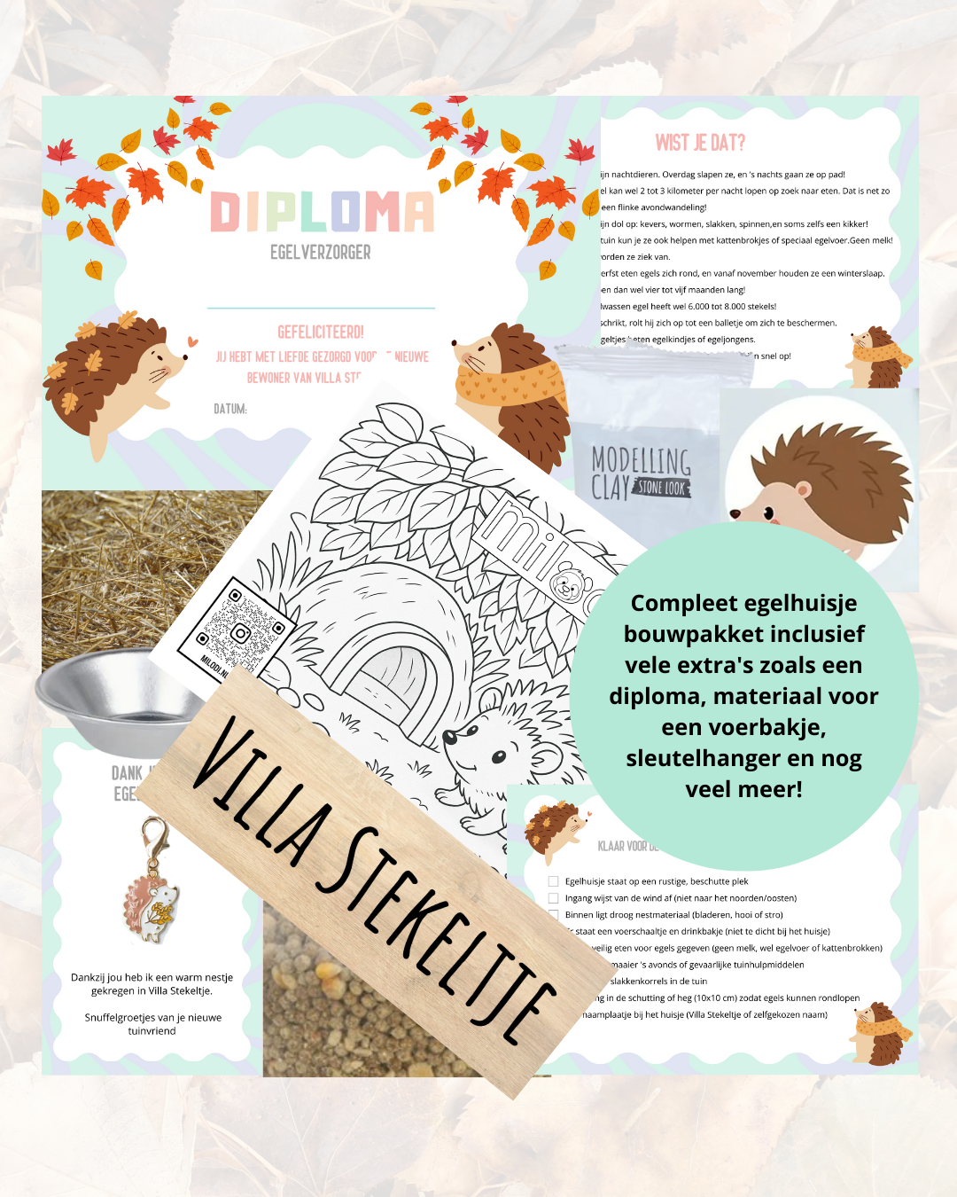 Ben je op zoek naar een origineel herfstknutselpakket waarmee je kind niet alleen creatief aan de slag gaat, maar ook iets goeds doet voor de natuur? Met het Villa Stekeltje Herfstpakket bouw je samen een écht egelhuisje: een veilige plek waar een egel zich kan terugtrekken voor zijn winterslaap.