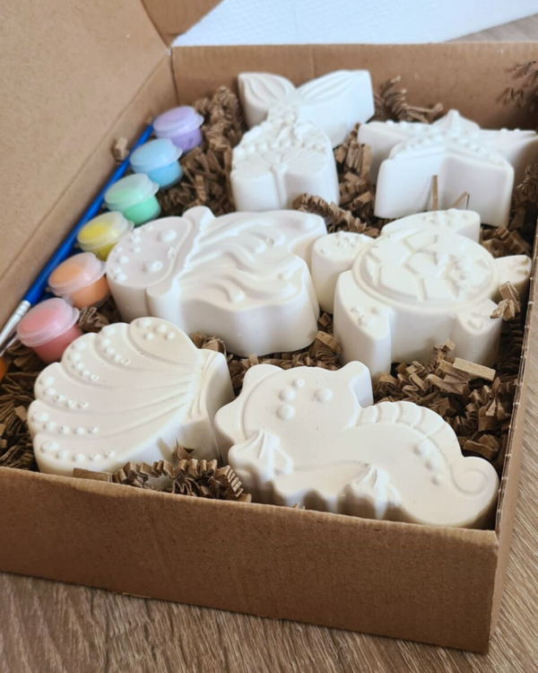 Haal de rust van de zee in huis met dit vrolijke knutselpakket vol gipsbeeldjes. In dit pakket zitten zes verschillende zee-figuren die kinderen zelf mogen verven in zachte pasteltinten. Van een zeester tot een zeepaardje: elk beeldje nodigt uit tot rustig schilderen en creatief bezig zijn.